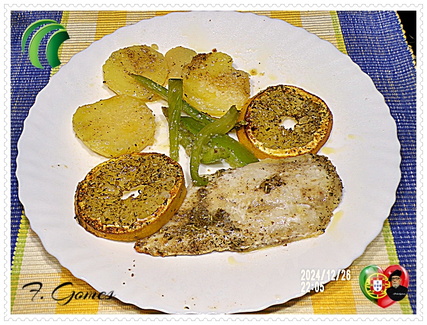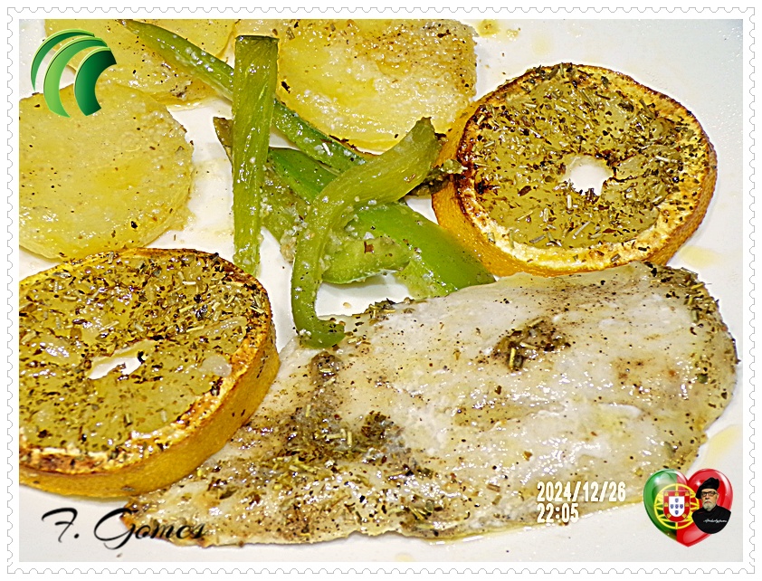 04.- Leve à Airfryer programando 180ºC~25-30 minutos, até o peixe estar cozido e os legumes macios. Sirva de seguida com uma salada de alface com rodelas de cebola, temperada com condimento de azeite virgem extra com aroma de Alecrim.