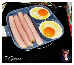 Mas para duas pessoas e para uma refeição ligeira, dá perfeitamente. Dois ovos estrelados e umas salsichas grelhadas, é suficiente.